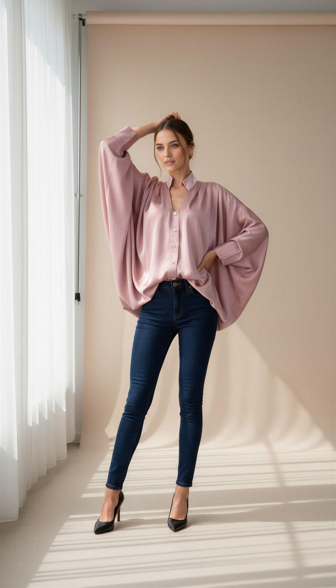 Dusty Pink Silk Batwing Top