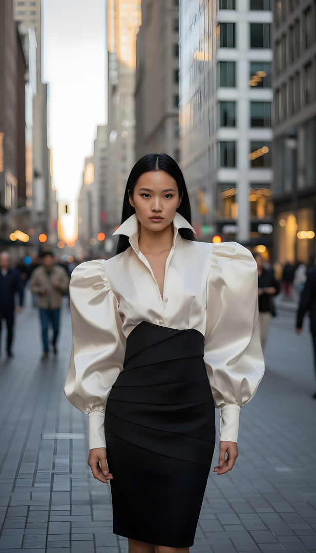 Cloose- Fitting Puff Sleeved Satin Blouse in XS S M L XL 2XL 3XL 4XL Sizes
