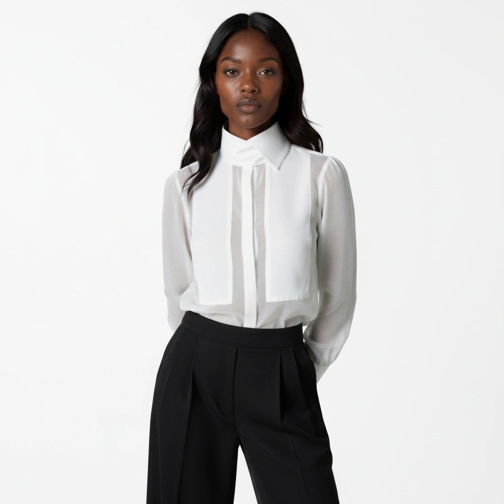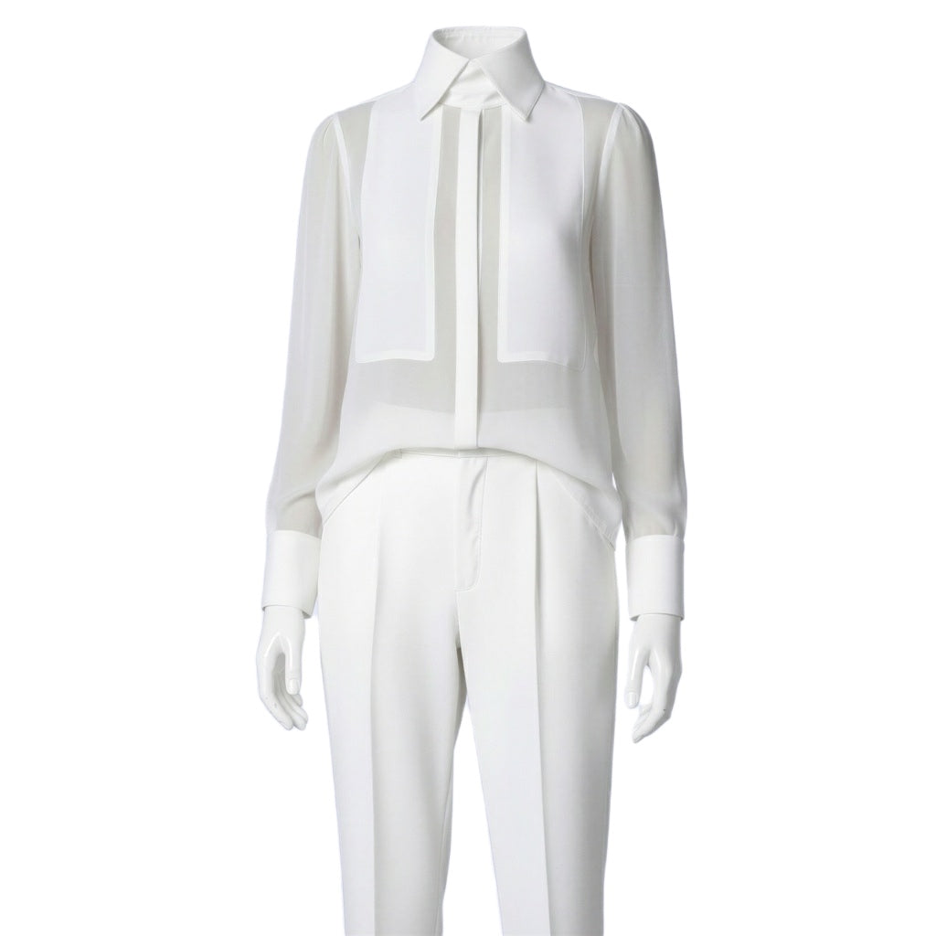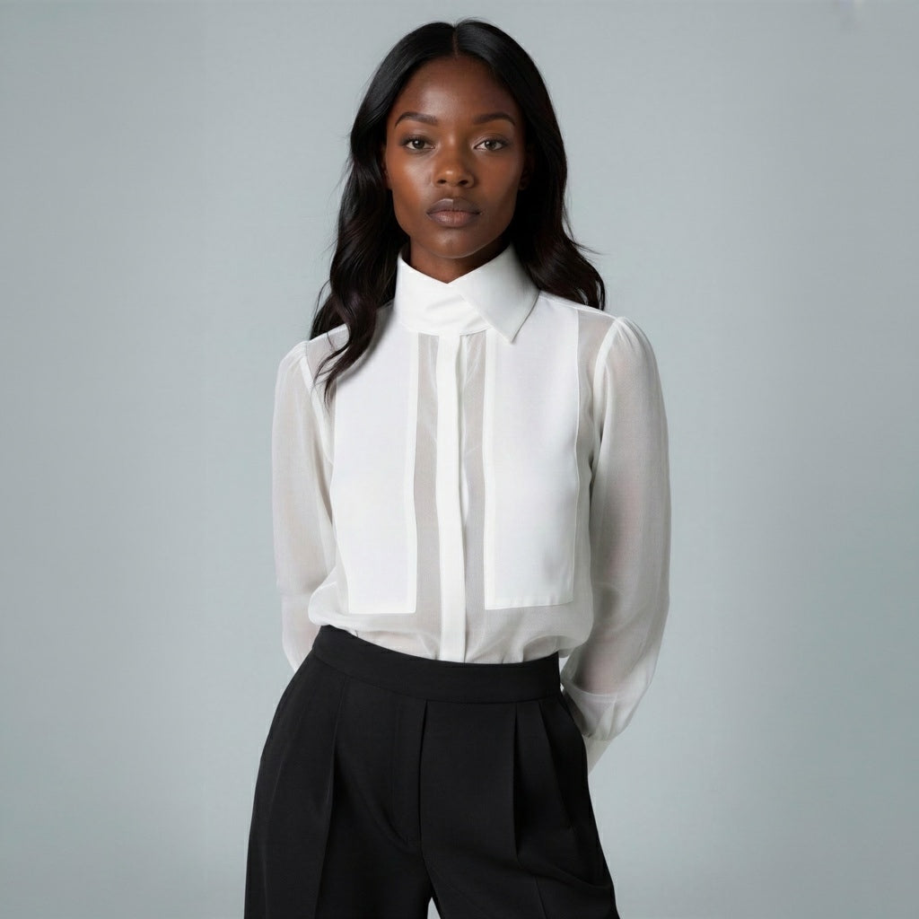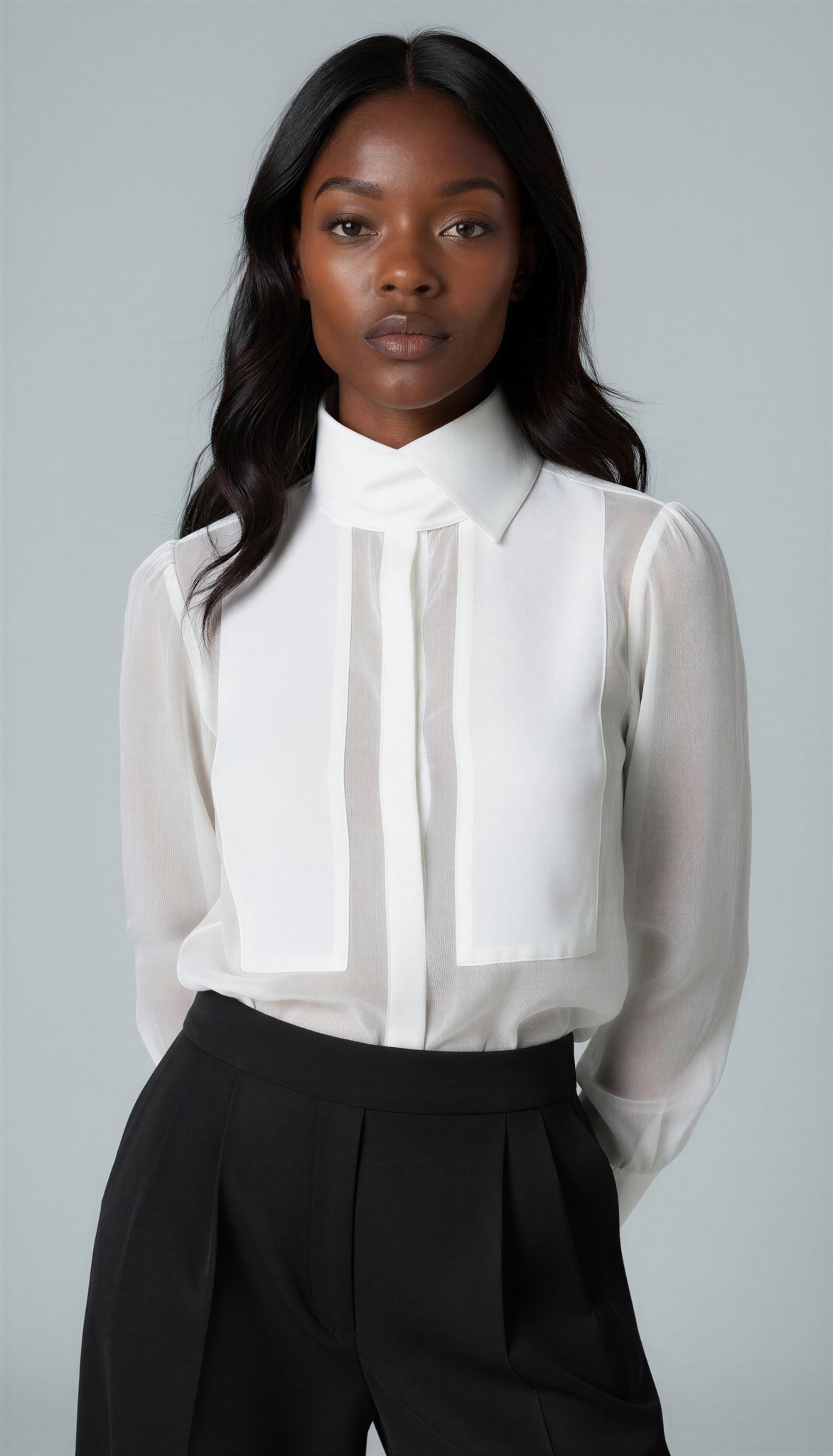Loose Fitting Silk Organza Blouse With cotton Details Front
